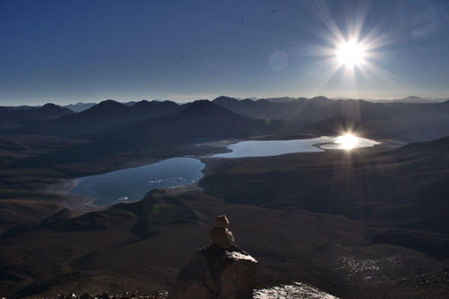 Pour bien commencer cette traversée, nous avons décidé de réaliser notre première ascension d’un sommet de presque 6000m, à savoir le volcan Licancabur (5940m). Je n’oublierai jamais la force mentale de Manon qui a résisté au froid malgré des pieds et mains congelées (il est vrai que nous n'étions pas hyper hyper équipés) et a réussi cette montée. Quelle vue au sommet sur le désert de Atacama et toute la vallée du Sud Lipez qui nous a souhaité la bienvenue ! Un arrêt dans le temps. Pas de vent. Nous sommes alors suffisamment haut pour voir loin, et réaliser que nous nous apprêtons à rouler aux pieds d'une file de volcans culminant à 6000m. Certains fument tranquilles.